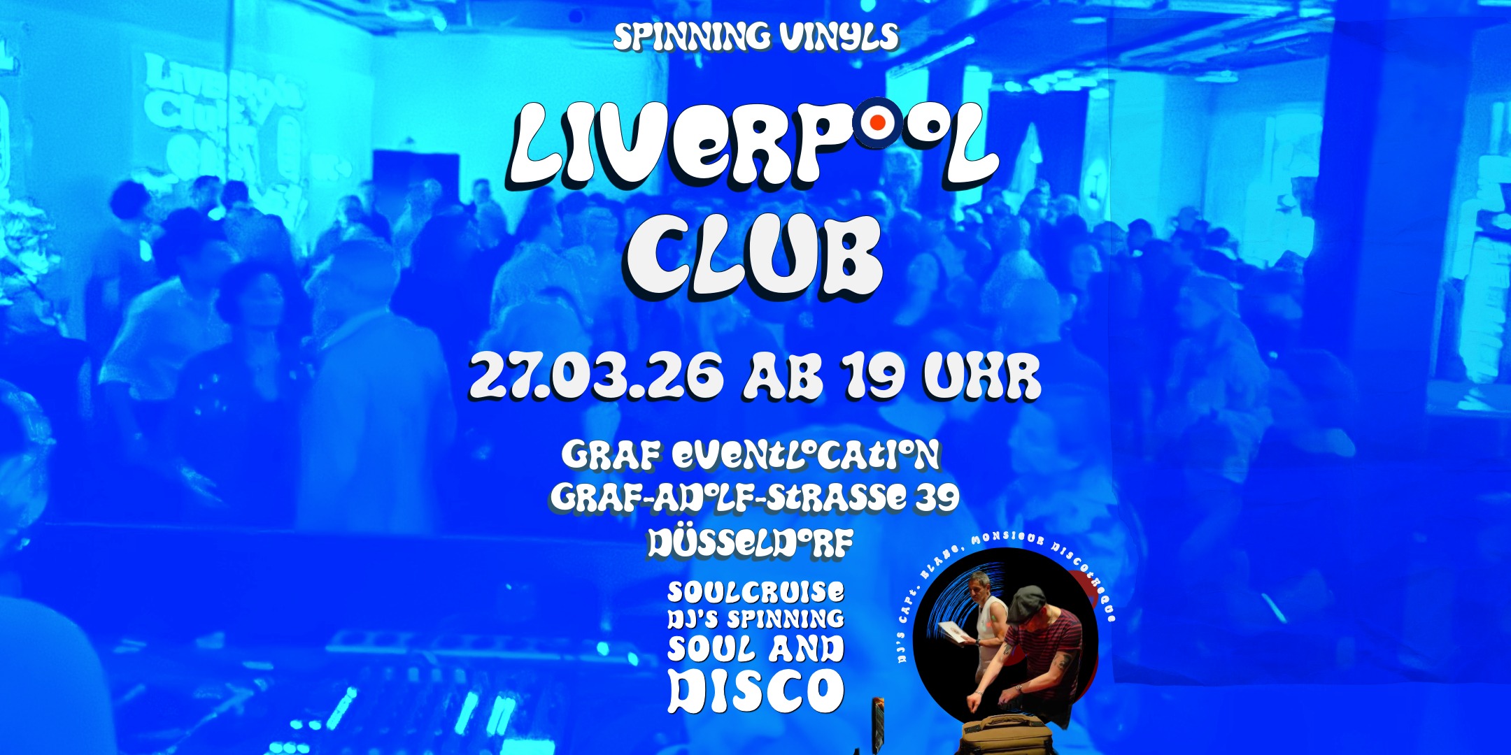 Wir sind die erfrischende Alternative zur Düsseldorfer Elektroszene! DJ Capt. Blake und Monsieur Discothèque garantieren mit ihren Sets aus Soul und Disco eine unvergessliche, legendäre Partynacht!